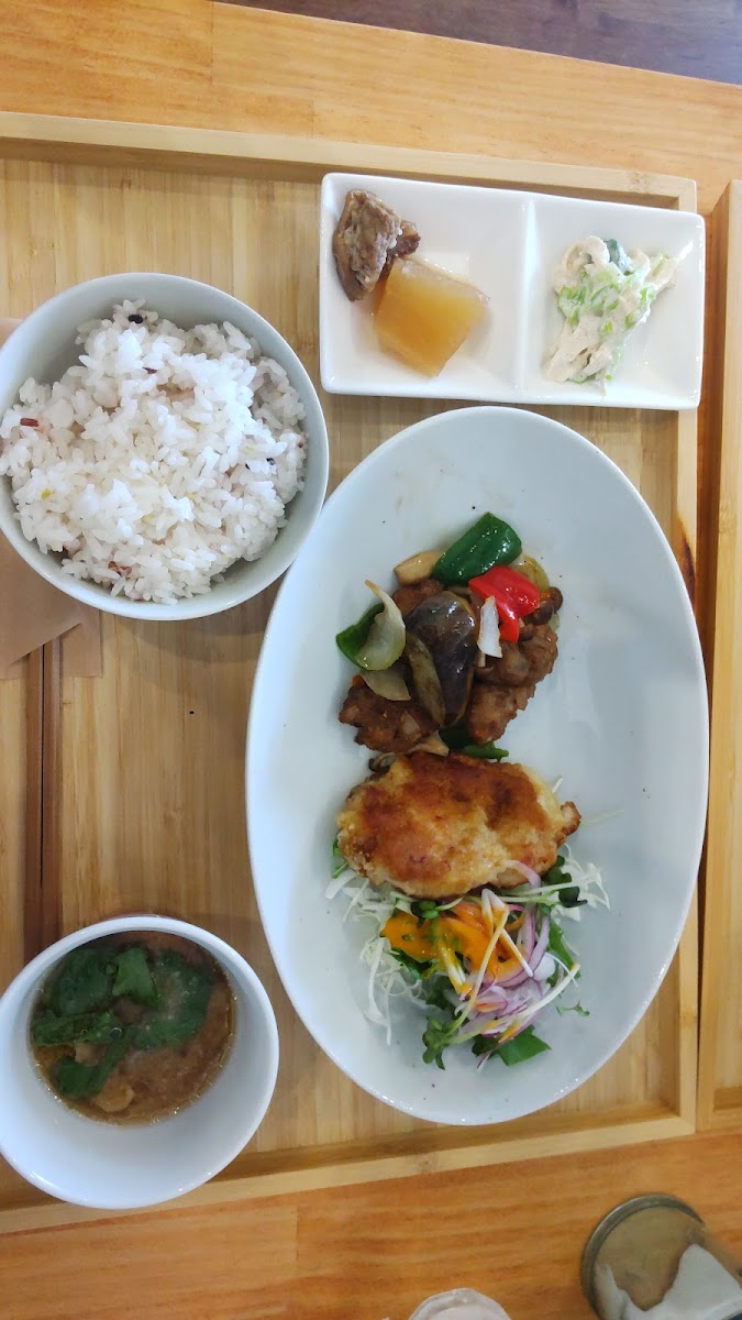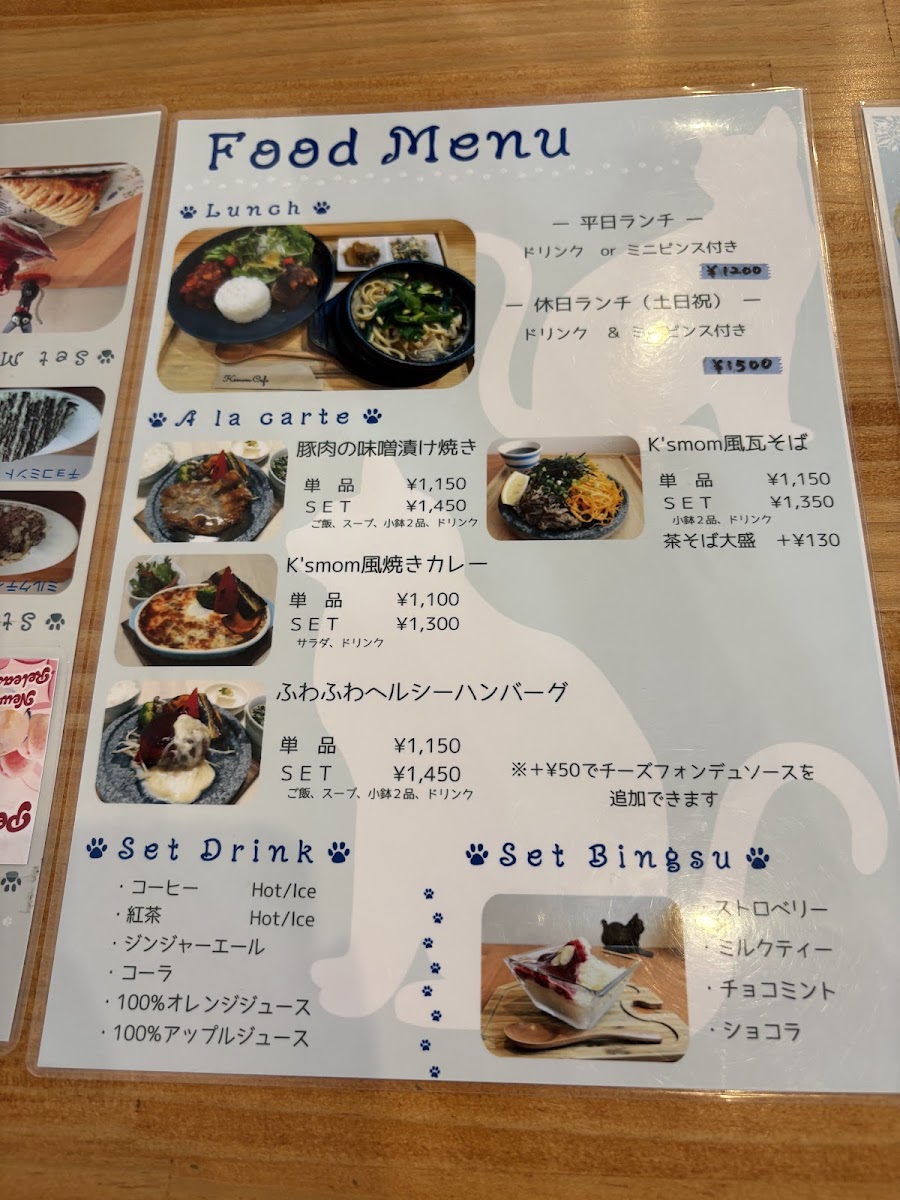 K'smom Cafe also excels in savory delights. Their ハンバーグ (hamburger steak) is a must-try, featuring a unique twist with tofu for a healthier spin. Served alongside a hearty portion of rice, soup, salad, and a fried egg, this dish offers a satisfying balance of flavors and textures. Guests have reported finishing their meals with glee, delighting in each bite. Another noteworthy offering is the 瓦そば (Kawara Soba), a traditional dish that is rare to find outside Yamaguichi, bringing a slice of regional Japanese cuisine right to Fukutsu.